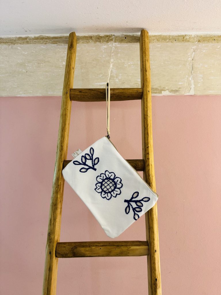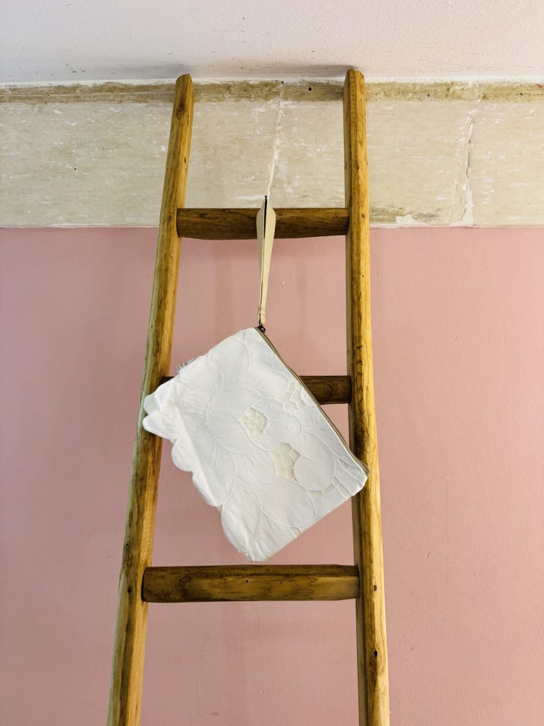 Además de los sacos, hay otra materia prima muy especial que La Sellerie Limited utiliza para crear sus accesorios y que además, refleja la importancia de la artesanía de Salento. Ese material es las labores (en forma de mantelerías o tapetes) que hicieron sus antepasadas y que ahora usan para crear bolsos y otros accesorios. “Queremos dar una nueva vida a lo que corría el riesgo de caer en el olvido. Los encajes y bordados de mi abuela y de sus cinco hermanas, que aprendieron estas artes de pequeñas, ahora se transforman en bolsos únicos. Quien los compra no solo adquiere un accesorio, sino también una pieza de la historia familiar, algo único que transmite magia y recuerdos”.