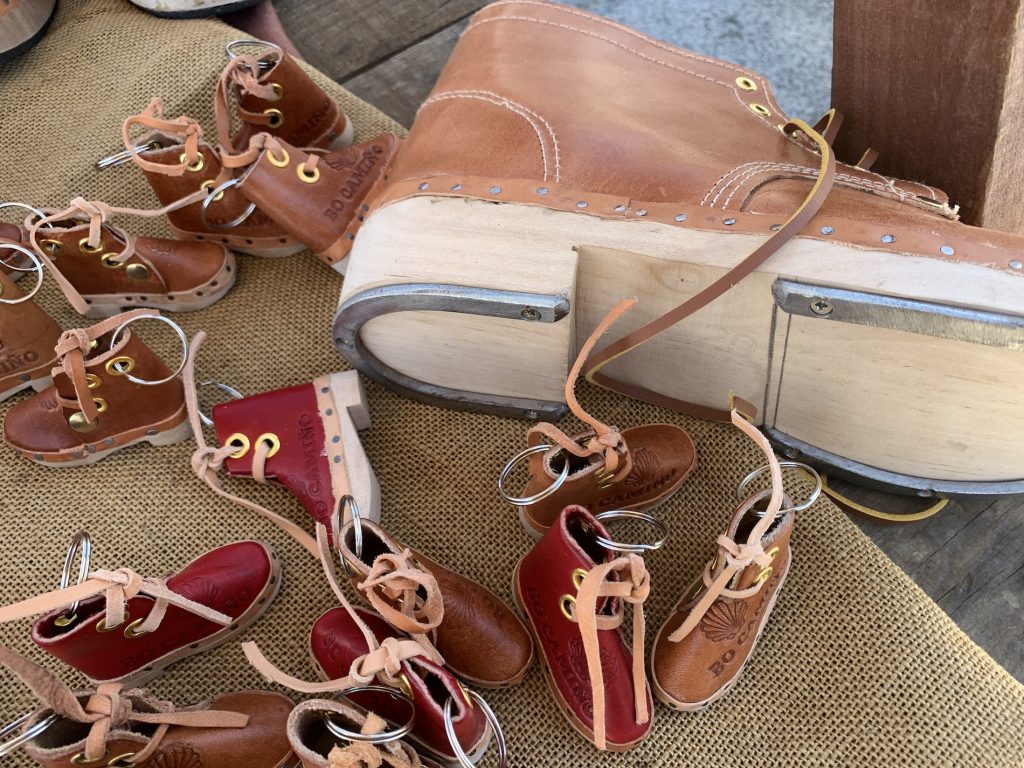 Me fijé en lo que estaba haciendo y en los productos que allí ofrecía y pude ver que estaba haciendo a mano tamancas de cuero. Las tamancas, son el calzado más antiguo y tradicional de Galicia. Se caracterizan por tener una suela fabricada en una sola pieza de madera y acabar en una especie de botín de cuero resistente. Se usaban principalmente para el trabajo diario y en el campo, siendo un calzado práctico para las zonas húmedas y frías.
